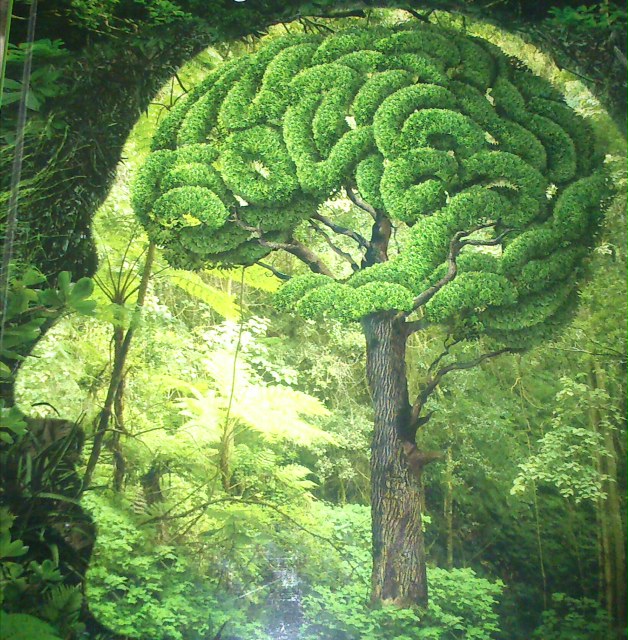 Met zijn machete kapt de geest beperkende denkbeelden weg om zich een weg te banen, geen uitzicht verder dan het volgende denkbeeld, geen overzicht over het geheel.