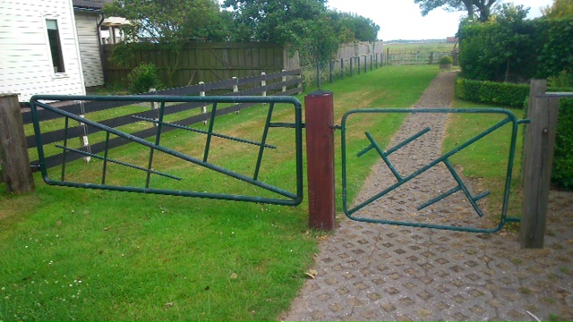 Het groen stroomt speels door onder de beperking van het hekwerk dat hij destijds