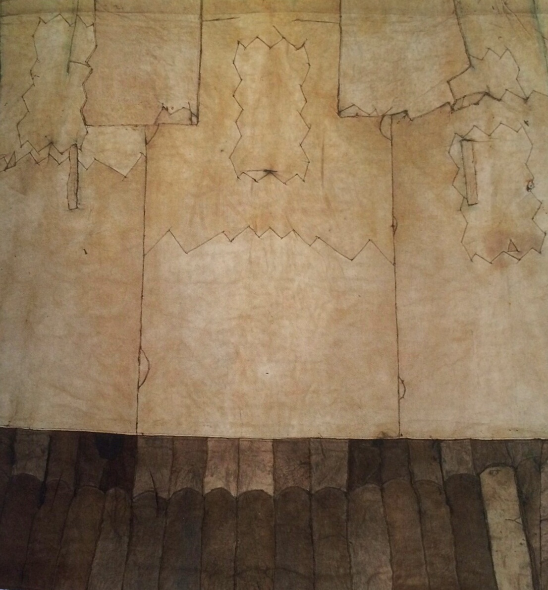als tekens in boombast gekerfd,