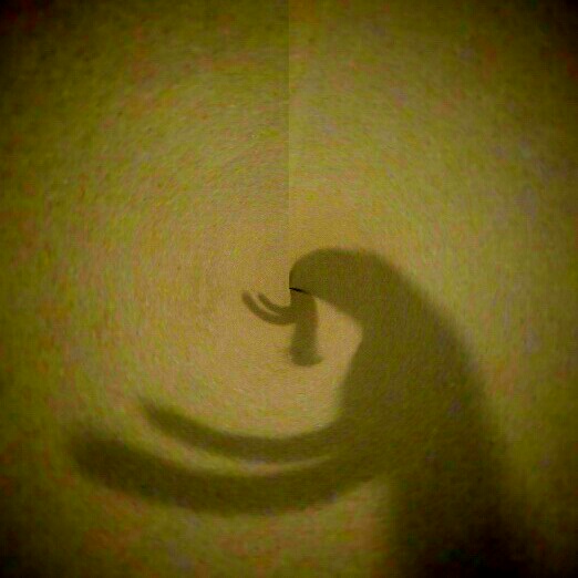 Buiten op het doek van zijn tent zie je de rituele reis naar hier,