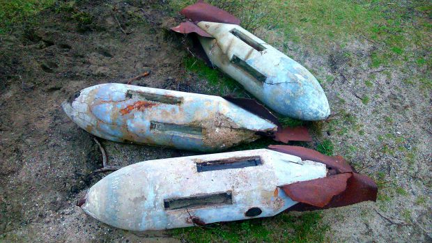 Met oefenbommen van gewapend beton oefenden de Duitsers boven de Kennemerduinen met hun Messerschmidts.